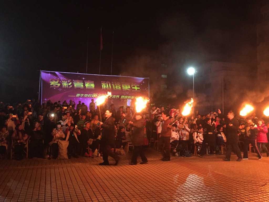 人声鼎沸响彻天空,熊熊篝火照亮苍穹。2016年12月29日晚,更生学校全体师生以及部分返校更生校友齐聚旗台广场,举行了第22届火凤凰艺术节迎新篝火晚会。