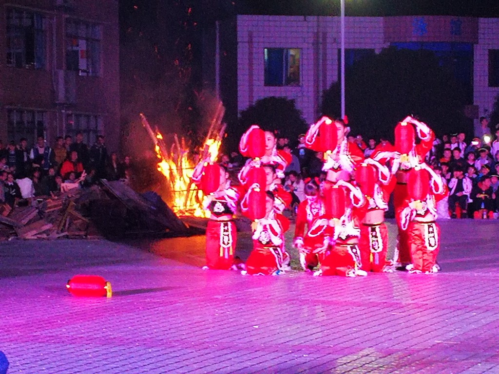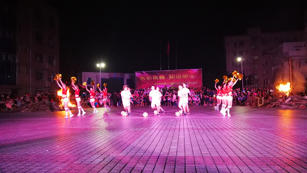 各班经过充分准备,为晚会带来了丰富多彩的节目和达体舞表演,精彩的表演赢得了大家的喝彩与掌声,老师们和同学们一起在火堆旁载歌载舞,尽情释放着自己的欢乐与激情。