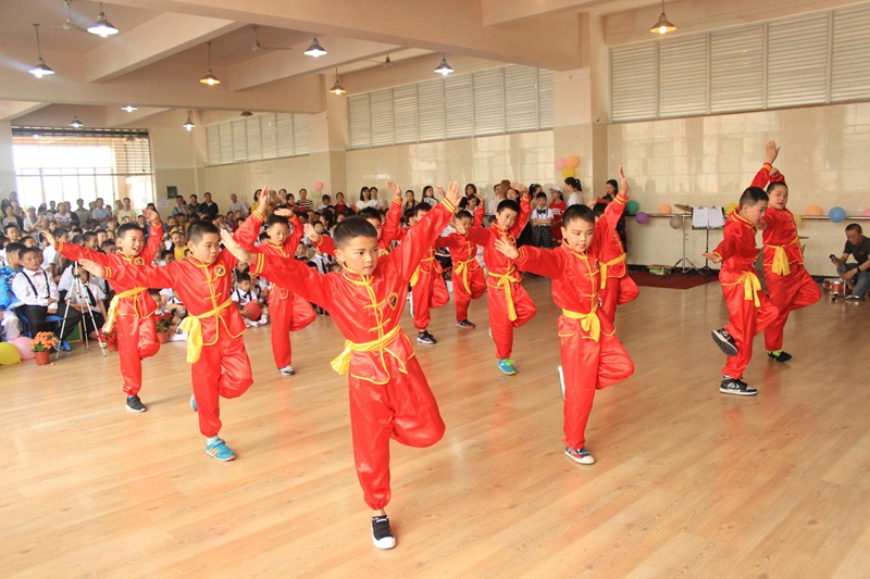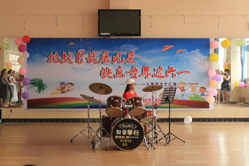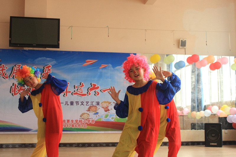 “六一鲜花处处开,更生少年翩翩来。勤奋学习日日进,远大前程年年再。”表彰会结束后,小学部体育组健美操表演拉开了文艺表演的序幕。接着朗诵、乐器演奏、舞蹈、武术、英语歌等一个个精彩节目轮番登场。学校舞蹈队送展的节目《鸿雁》以大气、优美的表演把活动推向了高潮。台上同学们的表演赢得了家长和孩子们热烈的掌声,大家在一起度过了一个快乐的“六一”。