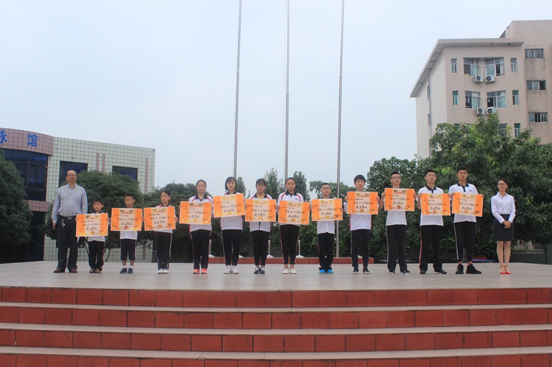 为了表彰先进,营造良好的校风和学风,开学典礼上训导处主任余勇宣布获得2016-2017学年下期“先进班集体”、团委、学生会优秀干部及优秀升旗手、主持人名单。其后,行政办主任王晓勤宣布上期获得2000元及以上奖学金学生名单,并由校长助理阮顿给获奖班级和学生颁奖。