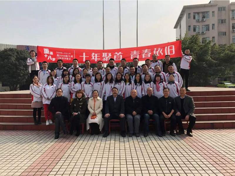 他们是学校2008届9班的同学们。他们怀揣着一颗“重返十八岁”的心,带着对母校深切的思念。回到学校,回到他们曾经学习与战斗过的地方,组织并参加了这一场他们精心筹划并准备了一年多的毕业十周年同学会。