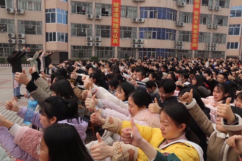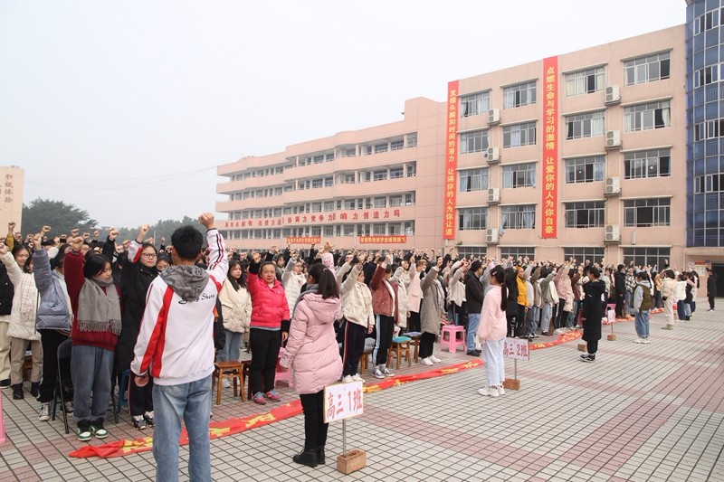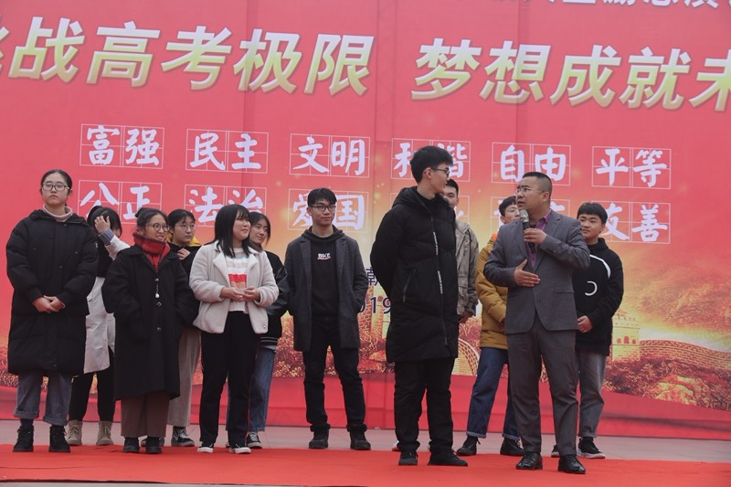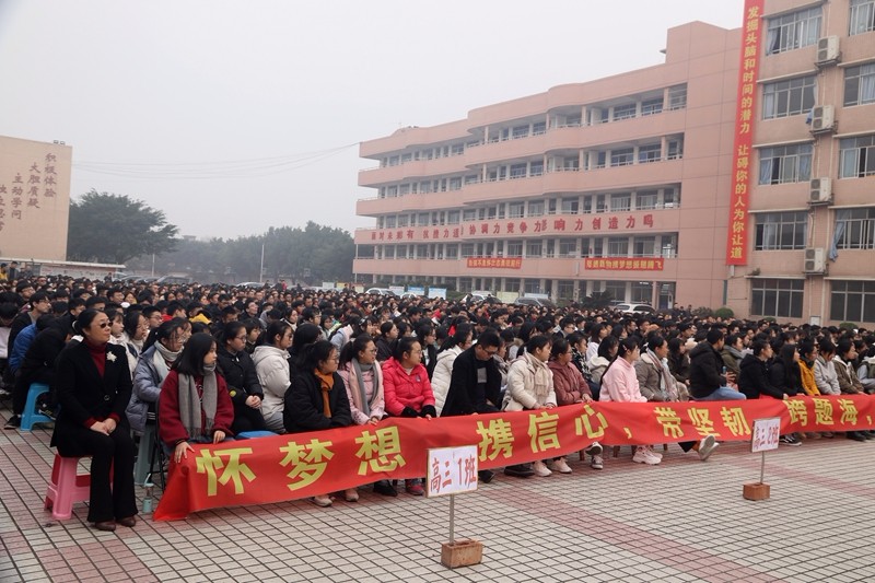 早晨9点的校园,虽寒风凛冽,但全校初三、高中学生以及高三学生家长,在旗台广场有序就坐。舞台中央的背景板上“挑战高考极限、梦想成就未来”的标语格外醒目,教学楼外墙上悬挂的阮校长精心准备的标语“奋勇拼搏追梦成真,蹉跎岁月抱憾终身”、“图谋进步聚精会神,欲求高效踏实认真”、“勇敢自信开拓坦途,坚持不懈成功大路”、“当今不克学习小艰,日后自吞生活大苦”鼓舞人心,让人心情激动、热情高涨、热血沸腾。