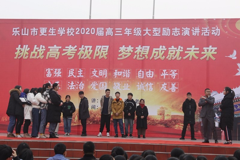 离高考还只剩下176天之际,乐山市更生学校于2019年12月14日举行了隆重的《挑战高考极限,梦想成就未来》高三励志演讲暨家长会。