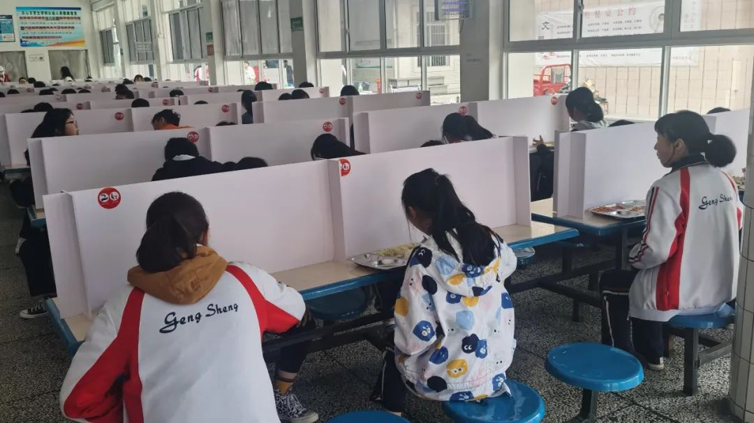 分时、分段、分通道,同学们顺利返校 我校有小学、初中、高中三个学部,按教育局开学时间安排,我校分别在3月31日、4月6日、4月8日分别迎回了各学部、各年级同学们。 开学第一课 学生返校后,各年级各班级组织学生进行了以“疫情防控、家国情怀、责任担当”为主题的“开学第一课”学习,班主任向同学们再次强调了疫情防控知识;引导同学们感恩一线医护人员、解放军战士、人民警察、社区防控人员、基层工作人员付出的辛劳、做出的贡献,同时明确身为学生的责任担当;引导同学们体会到疫情防控的艰难、感受回归校园的不易,树立珍爱生命、感恩他人、互助友爱的品格。 春暖花开,课堂重启 分时、分段间隔就餐,确保师生饮食安全 本期学校改变了用餐方式,统一提供餐具,学生凭餐具卡领取餐具,用餐后归还餐具,进行统一清洗、统一消毒。为防止学生因讲话造成食物喷溅,学校对餐桌进行了改造,加装了隔板,保证师生们的用餐健康。 学校认真贯彻落实省教厅学校食堂就餐安全的要求,精心安排各学段、各年级分时、分段就餐,并加强就餐管理。每天由值周行政带领值周老师和年级值班老师深入食堂巡查,要求同学们按座位标记落座就餐,就餐时不讲话,各年级在规定时间内完成就餐,确保错峰就餐的有序进行。