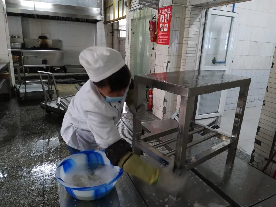 为深入落实新冠疫情防控工作要求,加强学校食堂的管理服务,全力保障广大师生身体健康和生命安全,更生学校后勤处利用周末组织所有后勤人员开展卫生大清扫活动。