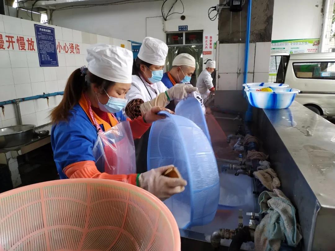 为确保全校师生吃得放心,厨房每日食品加工用具和师生使用的餐具都严格进行清洗和高温消毒,并进行区分使用。后勤部门每日坚持做好食品留样工作,并对留样冰箱进行严格管理。