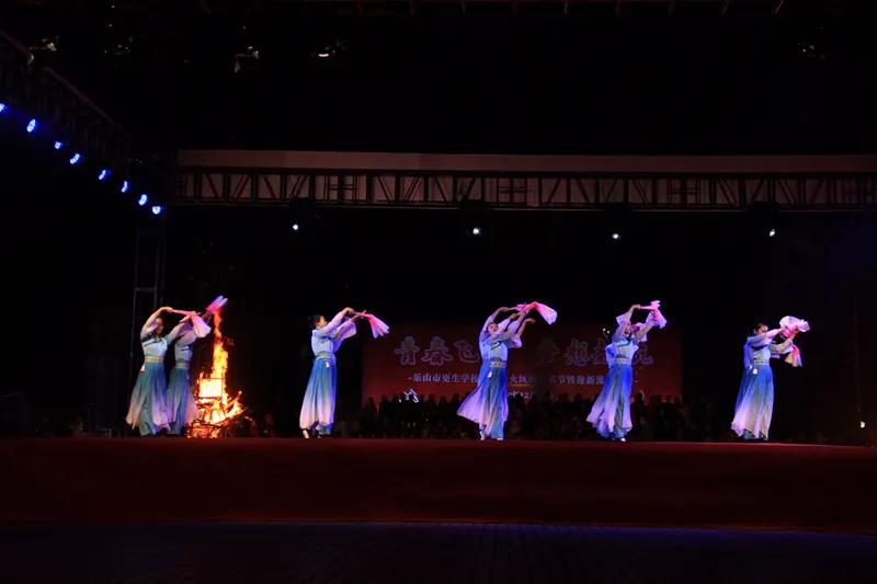 篝火晚会一定少不了围着火堆跳达体舞,这也是更生的传统与特色。各年级的优胜班级分场次进行达体舞表演。而作为在更生最后一次参加篝火晚会的高三年级享受特殊优待——全体学生都能上场。师生们围着熊熊篝火旁踏歌而舞,火光映照着师生们的笑脸,青春和梦想在夜空下飞扬。