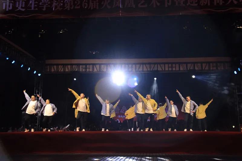 由15位青春靓丽的女教师和13位阳光帅气的男教师带来的舞蹈串烧《榴花似火》将晚会气氛推向了高潮,老师们以自信的笑容、优美的舞姿,表达了更生教师积极向上、青春活力的精神风貌。