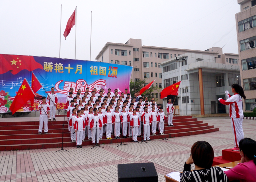 六十五华诞,举国欢庆。2014年10月10日,我校在国旗广场上隆重举行“娇艳十月祖国颂”歌咏比赛,在热烈的比赛中,各班同学活力四射,精彩节目连连,高潮迭起,整个会场都沸腾起来。最终,特等奖被高二、2班摘得,其余奖项如下,一等奖(高二、10班;初一、2),二等奖(初三、2班;高一、8班;高一、9班),三等奖(高二、9班;高二、12班;初二、2班;高一、10班),小学五、六年级获得表演奖。