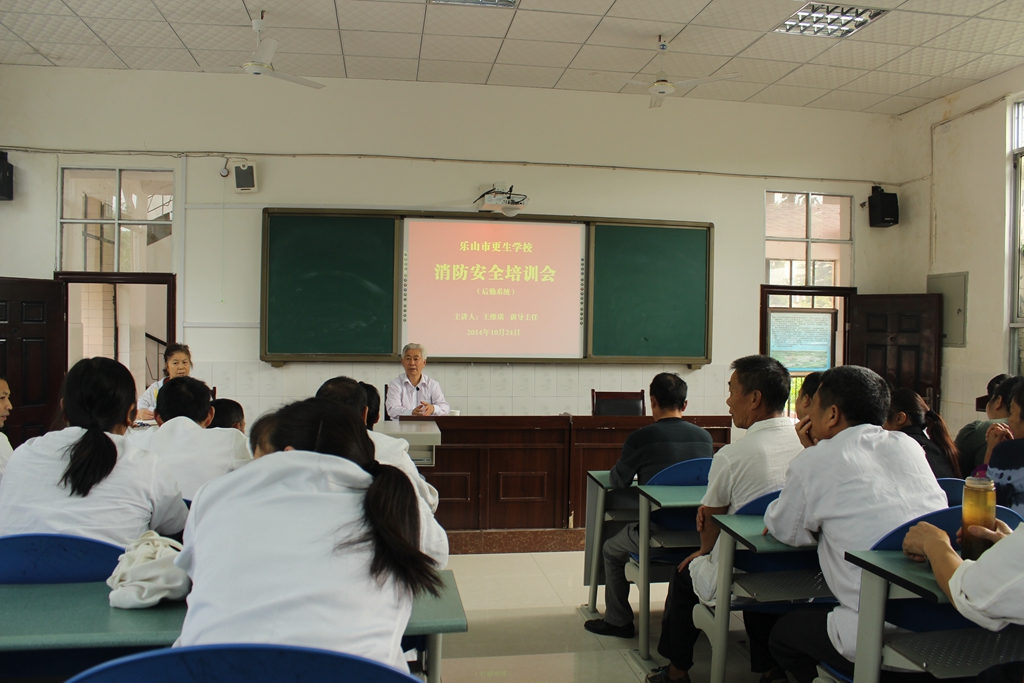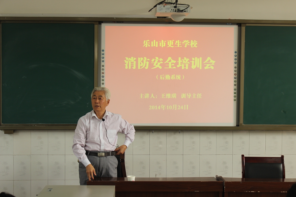 2014年10月24日,更生学校后勤全体员工参加了消防安全知识培训。训导处王维璜主任利用多媒体手段结合发生的重特大火灾案例,分析了引起火灾的原因、特点,讲解了对发现火灾后如何报警,火灾发生不同阶段的正确扑救方法以及现场安全疏散和正确逃生自救办法等知识,并对正确使用消防器材进行了详细讲解和实际的指导操作,后勤员工受益匪浅。消防安全知识培训后,全体参培人员进行了灭火演练。(文/图 衡江)
