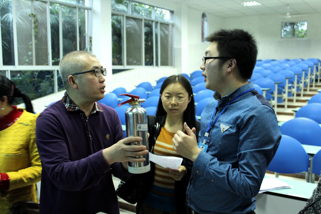 聂教官用强烈震撼的火灾现场图片、生动的案例,从发生火灾的起因,强调提高安全防范意识的重要性,对如何掌握使用灭火器材的方法及其性能、火灾现场自救逃生的技能和扑救初期火灾的时机、方法等方面进行了详细讲解。聂教官语言感染力强,老师们学习得很投入。讲座完之后,还有许多老师都围住聂教官进一步深入交流,询问多种灭火器材的性能、用法和购买情况。