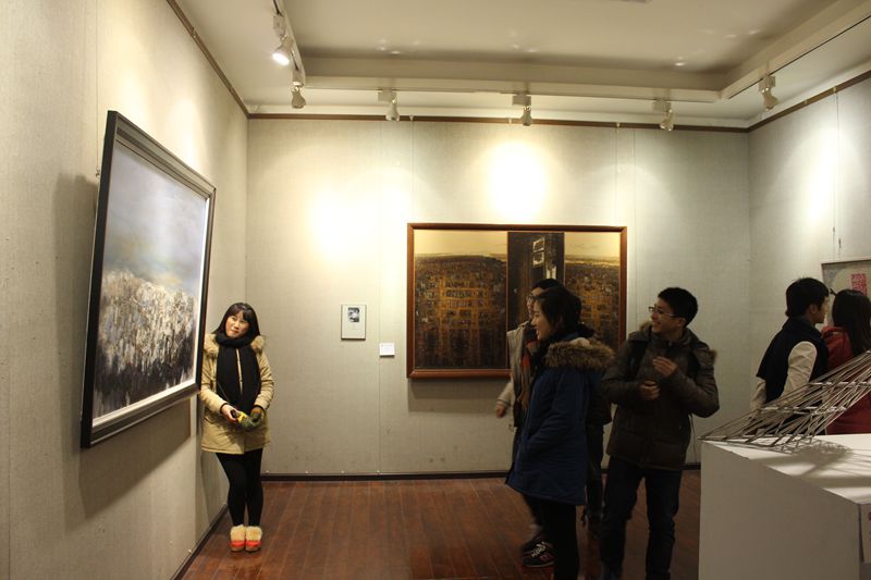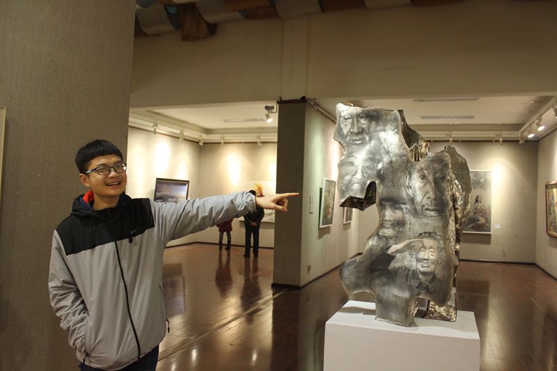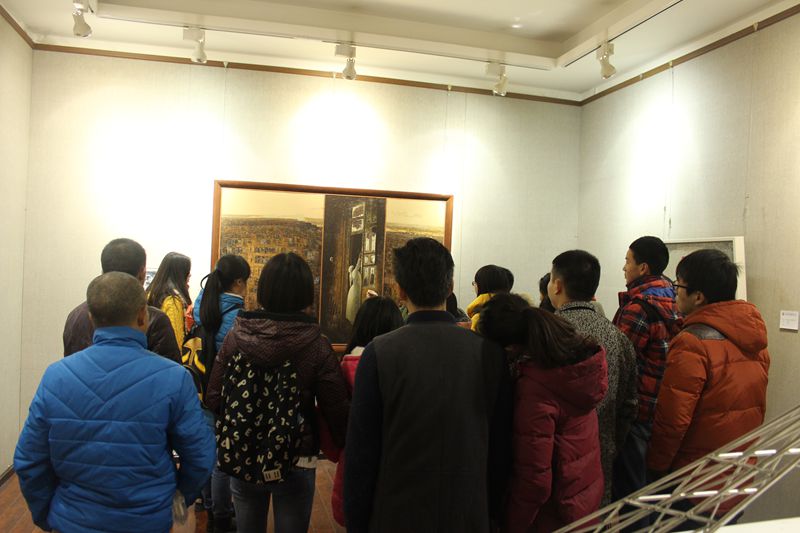 中午12:30,刚进展区同学们就活跃起来,纷纷奔向各自喜欢的作品前自由欣赏。半个小时候,衡老师召集同学们集中在一起,将每幅作品的作者大概情况、创作意图、涉及到的技法材料等专业知识现场讲授给学生,对于学生提出的各种疑问及时进行解答。此次观展,学生们流连忘返,惊叹一幅幅作品的精美与气质,更是提高了学生的审美修养,同学们纷纷表示收获非常大。