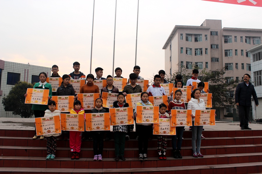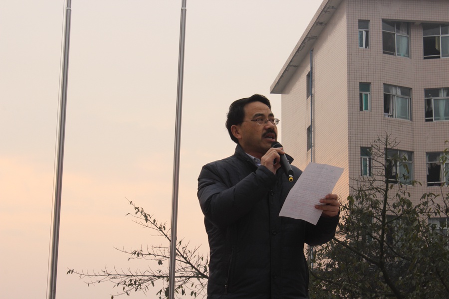 在雄壮激扬的国歌声中,鲜艳的五星红旗冉冉升起。训导处王维璜主任宣布上学期优秀班集体名单和行政办王晓勤主任宣布上期获得2000元及以上奖学金学生名单后,阮平校长给获奖班级和学生发奖。