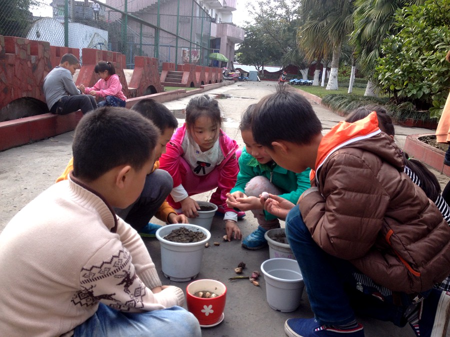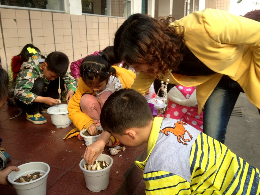 本次活动是一次家校同步进行的种植体验活动。前一周周末回家,每位学生在家里进行了各种各样的种植。回校后,孩子们带回了学校里种植活动需要的花盆、大蒜头,也带回了一颗期盼成长的心。
