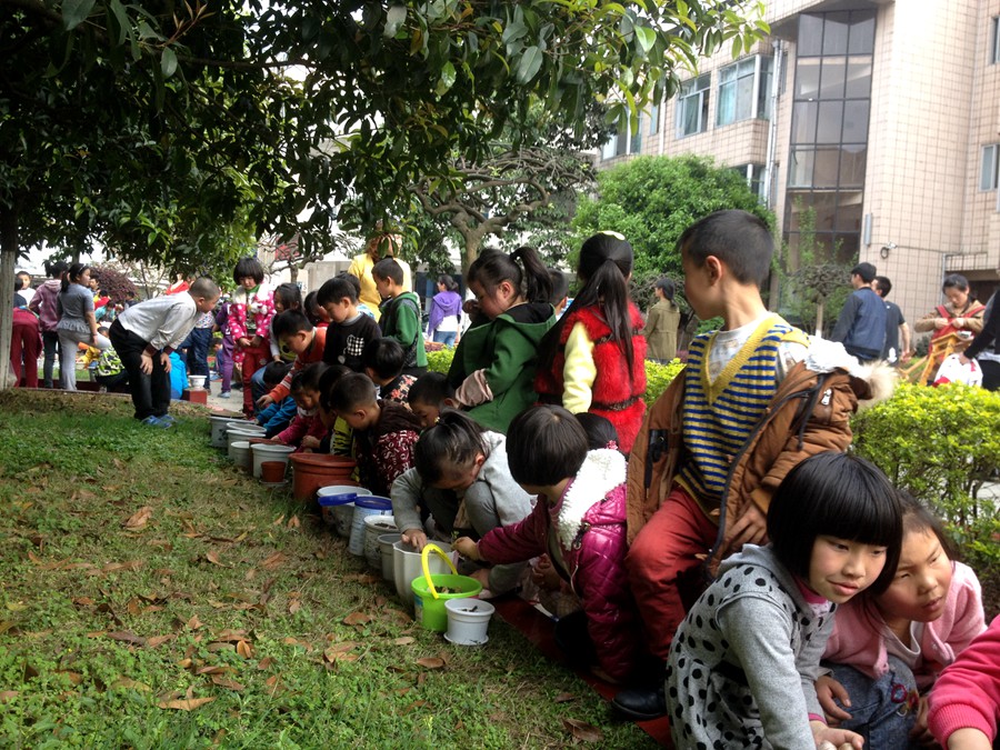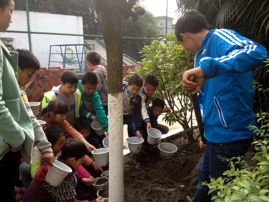 下午第三节班会时间,集体种植活动开始了。在大队辅导员和班主任老师的组织下,孩子们自己培土、播种、浇水、记录。这帮稚气未脱的孩子们在劳动时俨然都成了菜地里一个个跳动的快乐小精灵。他们认真观察蒜瓣的结构、对比研究土壤的成份,请教同学种植大蒜的要点,精心装扮自己的花盆,个个忙得不亦乐乎。大家感受着植物在阳光雨露及自己的照料下如何茁壮成长,体验着种植的乐趣及劳动的快乐,这样不仅得到了自己的劳动果实,也懂得了农民伯伯的辛勤,更懂得了各种食物的来之不易。