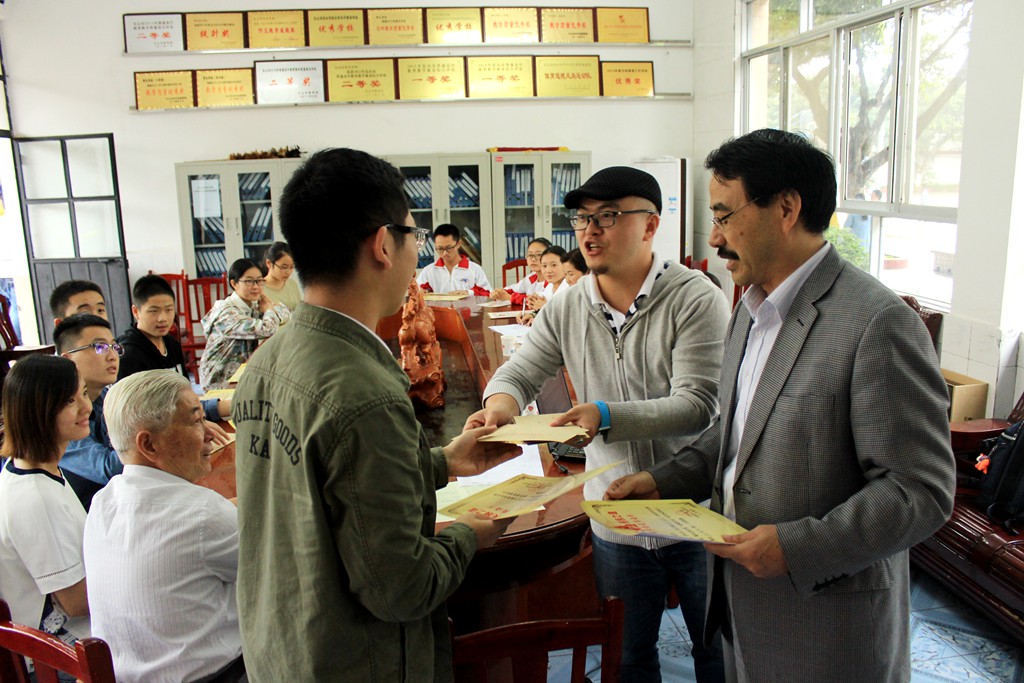 此次颁奖,校长阮平、校长助理阮顿、训导处主任王维璜以及行政办主任王晓勤到场。大家进行了简短的相互交流,会场气氛热烈。李燕先生鼓励同学们再接再厉,争取来年继续获得该奖学金,并希望获奖的同学以点带面,带动更多同学在学习之余全面发展自身素质。