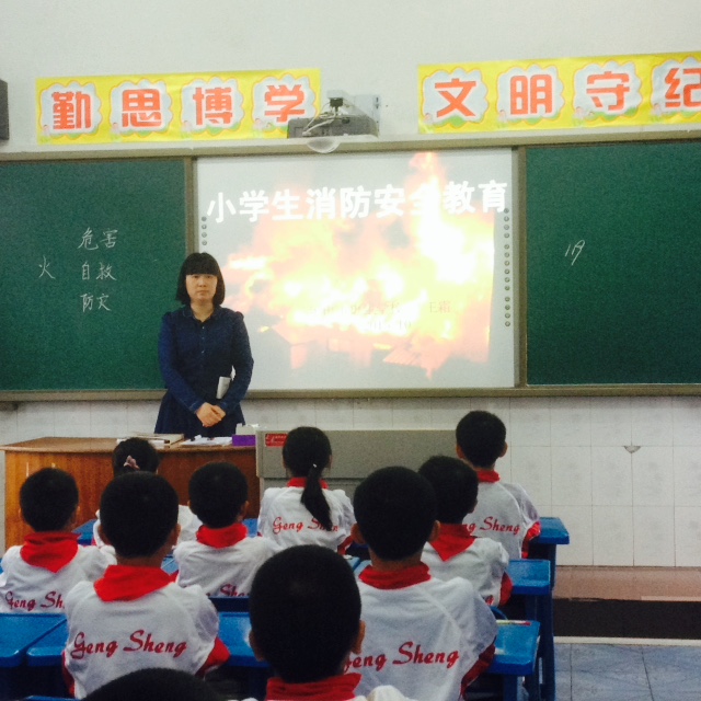 10月22日下午,小学四年级教室,孩子们精神振奋,在王霜老师的带领下又一次感受了消防安全知识的重要性。本堂示范课是乐山市更生学校应乐山市教育局和乐山市公安局组织“消防安全示范课”评选活动而进行的。