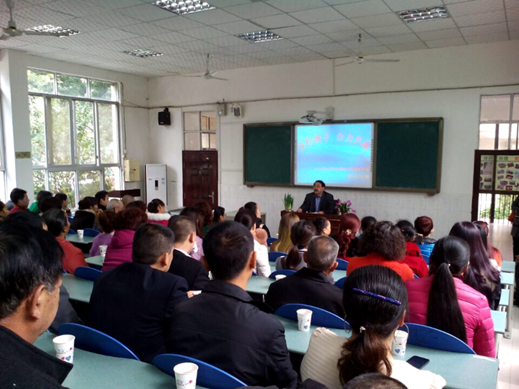 会议分三个议程进行。第一项阮平校长为家长们分析了当下家庭教育的三个要点:一、增强安全意识。包括增强交通安全意识,防范交通安全的隐患;增强信息安全意识,正确操作手机和电脑;增强人生安全意识,不让孩子独自外出。二、担起周末行为习惯养成和督促学习的责任。三、讲求教育艺术,恰当运用这几句话与孩子交流:“我爱你,爸爸妈妈支持你!”“对不起!”“好!可以!”“什么事情都可以跟我说一说!”“这件事还可以怎么做?”阮校长的讲解和建议接地气,为家长们当下家庭教育点亮一盏指明灯。第二项是小学部负责人朱主任发言。她就小学部本学期开展的主要工作和取得的一些成绩为家长们作了详细的汇报。第三项是家长们回到教室与班主任、各科任老师一起作针对性的交流。整个会议气氛热烈!
